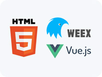 HTML5负责前端展示,Weex负责前端与设备之间的沟通(获取设备信息),Vue.JS负责执行数据渲染,APP开发使用当前最流行的WebApp技术。